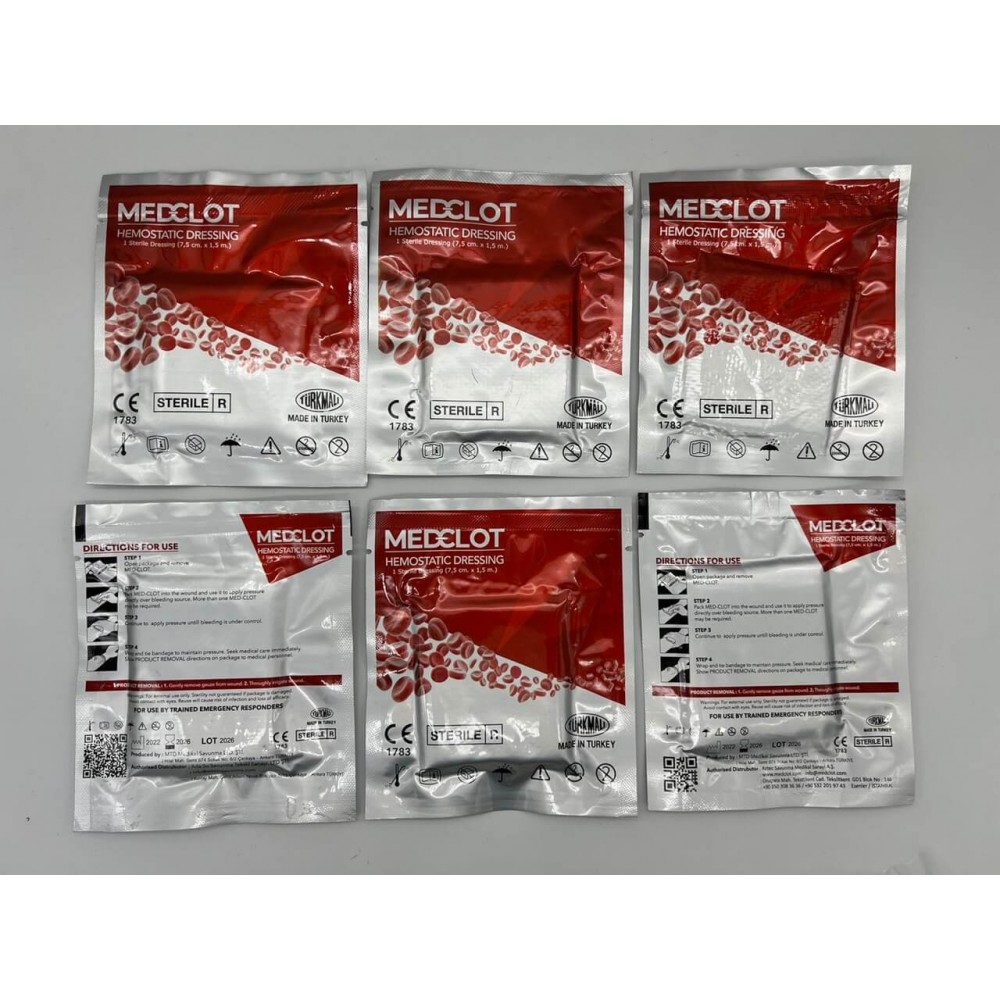 MEDCLOT - это современный кровоостанавливающий тактический бинт, сложенный Z "гармошкой" в герметичной стерильной упаковке. Такой вариант гораздо эффективнее по сравнению с рулонно упакованными бинтами или порошком россыпью. Бинт полностью покрыт кровоостанавливающим раствором гемостатических гранул, позволяет накладывать на рану сегмент за сегментом прямо из упаковки. В отличие от других широко используемых гемостатических средств, Medclot не содержит белков животного или человеческого происхождения, которые могут вызывать аллергические реакции.