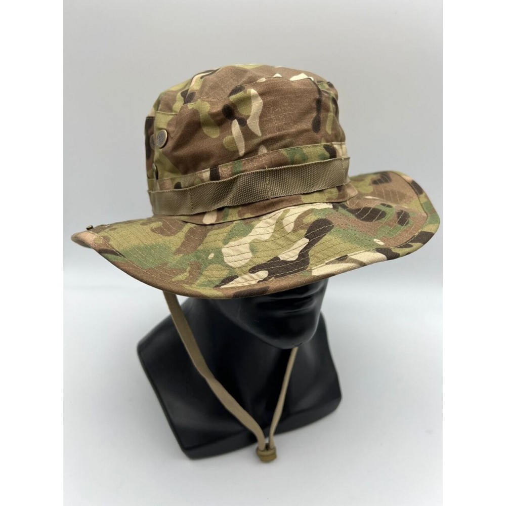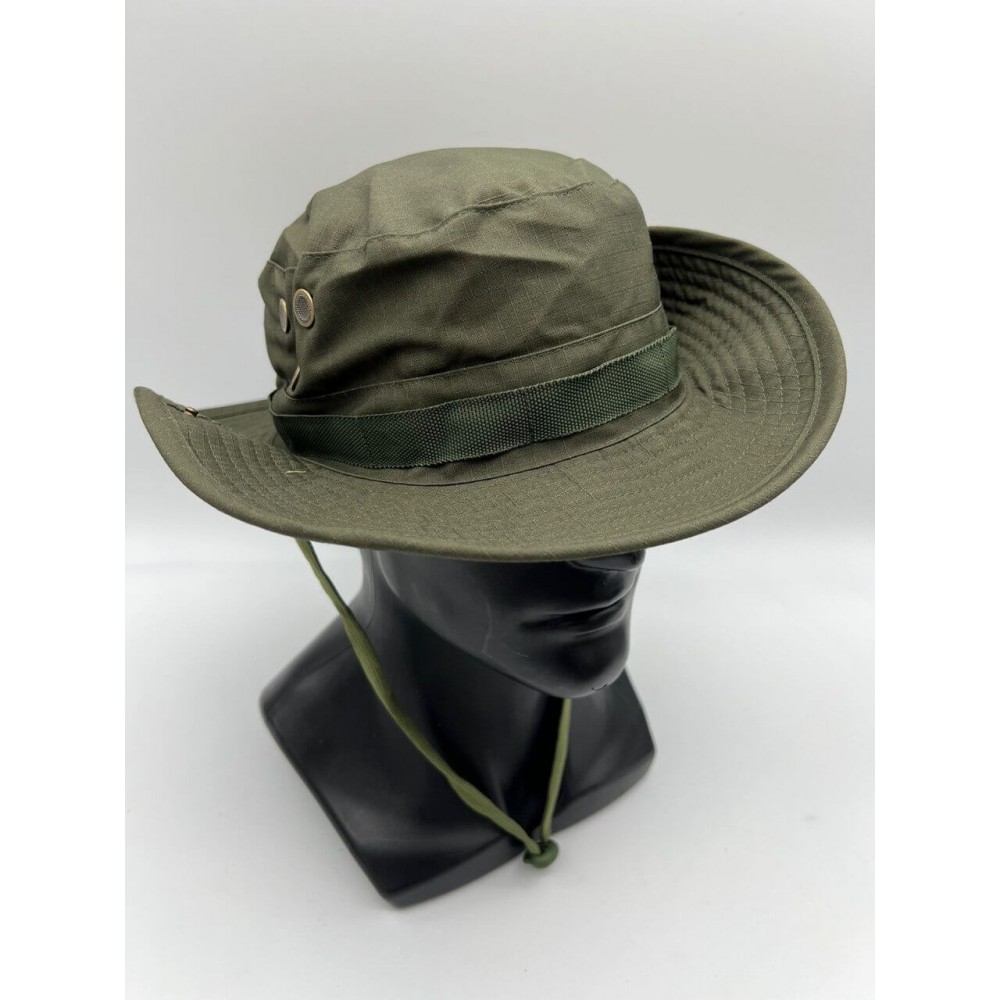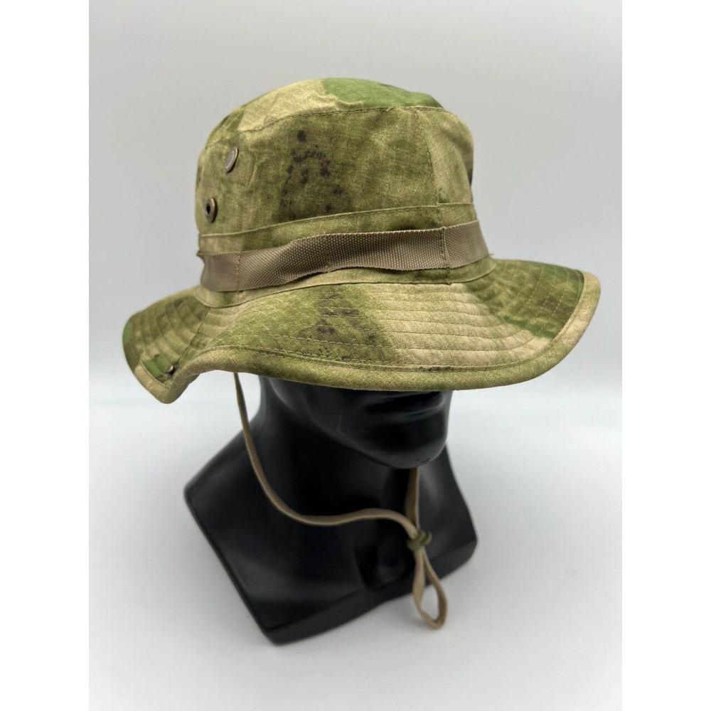 Армейская панама, сделана по образу и подобию легендарной панамы Boonie. Имеет покрой с полужесткими полями. Тулье с нашитой по периметру лентой, которая рассчитана на крепления дополнительных средств маскировки. Снабжена специальным шнуром с бегунком для удобной фиксации, который не позволит панаме слететь с головы во время сильных порывов ветра. А так же имеет четыре встроенных люверса с сеткой (по два с каждой из сторон), обеспечивающие хорошую вентиляцию. Панама пошита из ткани RIP-STOP. С изнанки все швы скрыты. Такой способ обработки швов сделал панаму более комфортной при длительном ношении, а также повысил ее устойчивость к износу.
