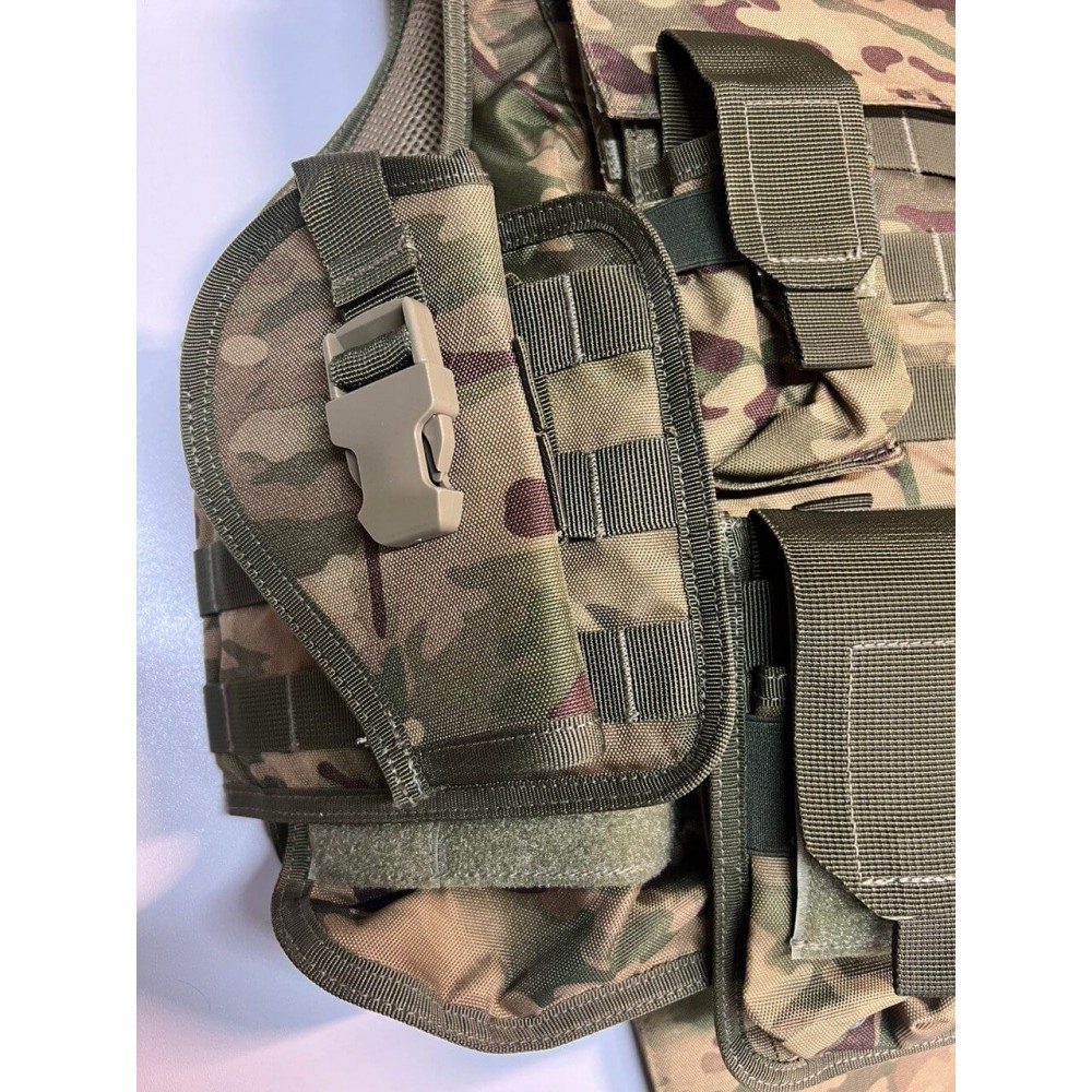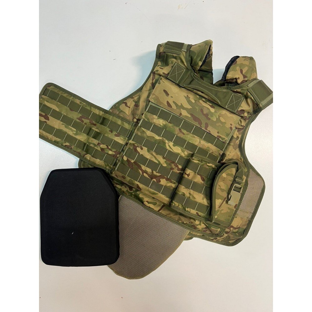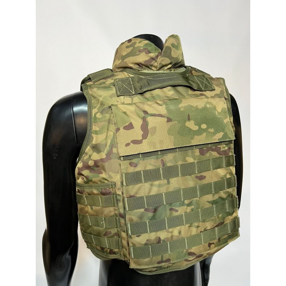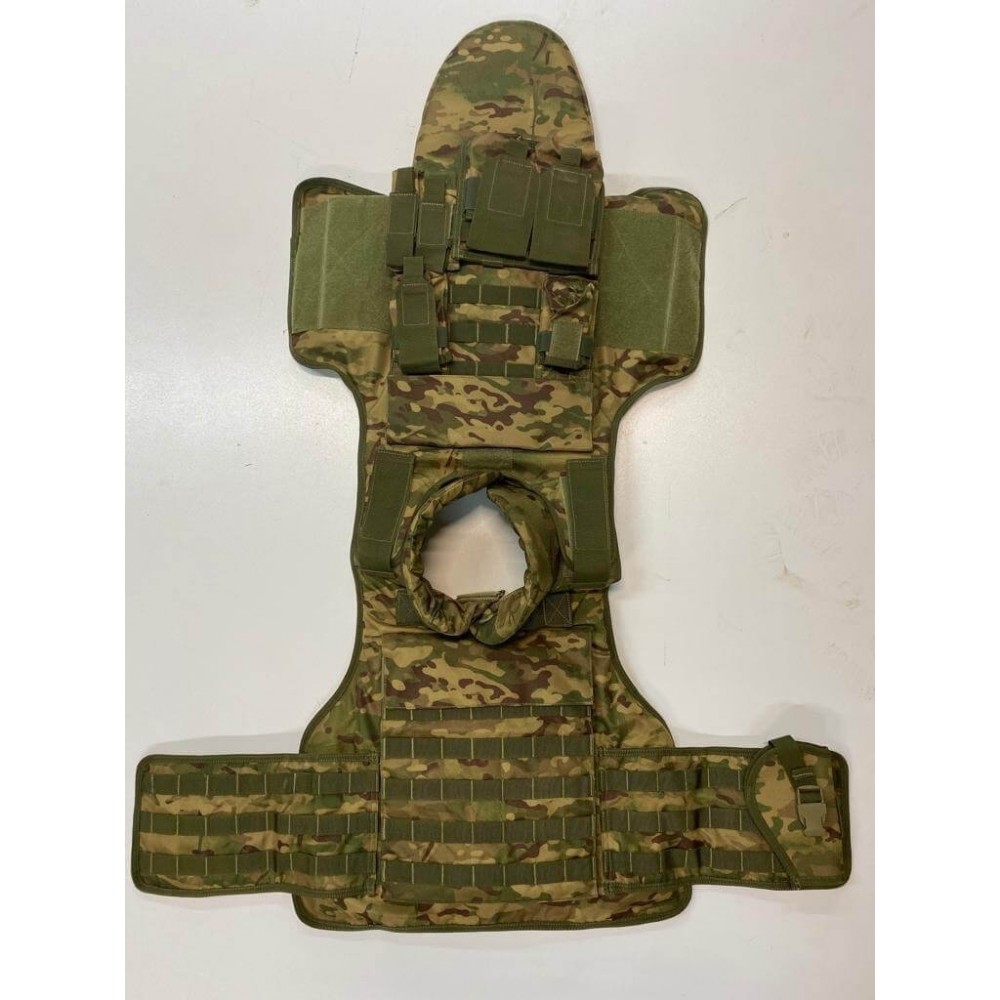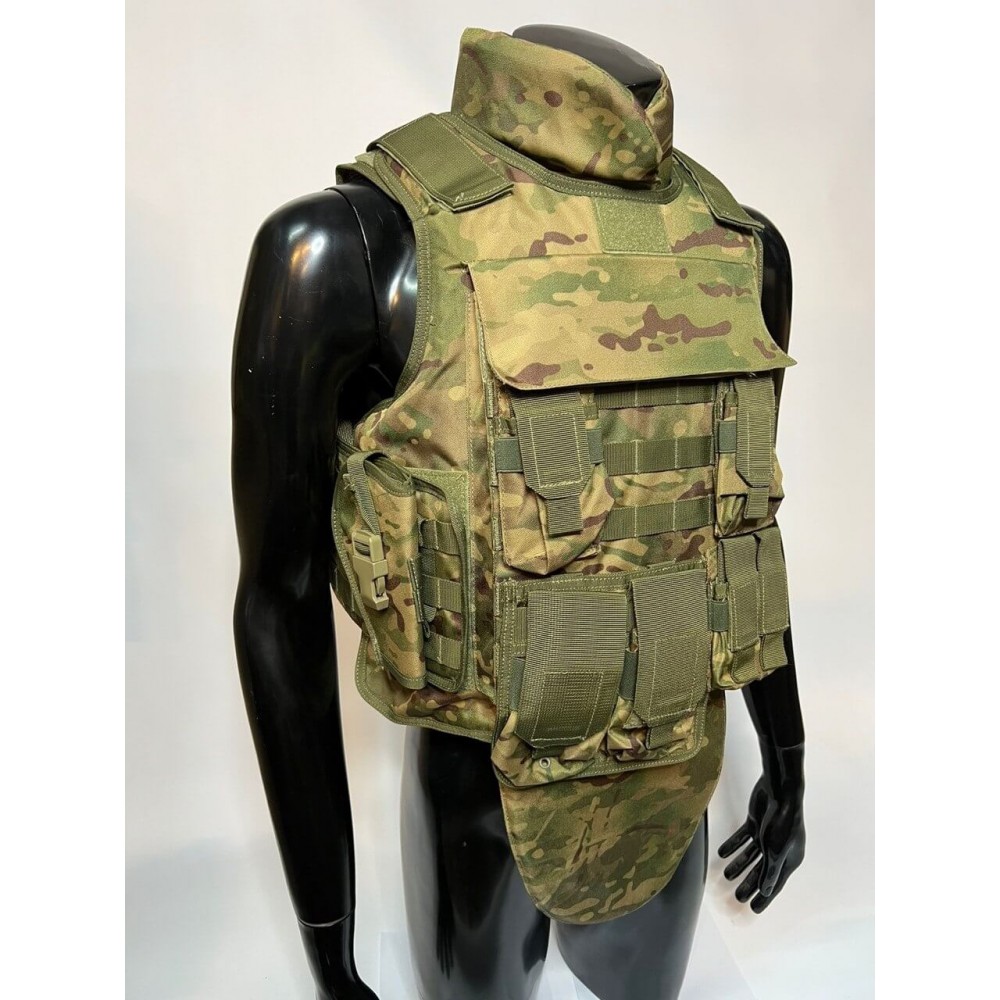 Бронежилет обеспечивает полную защиту благодаря своему баллистическому пакету, который включает переднюю, заднюю, боковую, паховую зоны и шею. Он изготовлен из прочной ткани Оксфорд 900D и состоит из 45 слоев баллистической ткани из полиэтиленовых волокон, обеспечивая высокую степень защиты от различных угроз.
