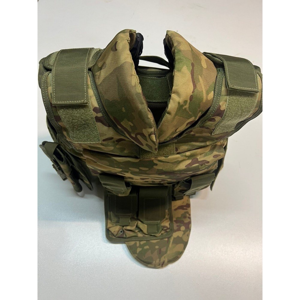 Этот полностью укомплектованный бронежилет класса защиты Бр5 обеспечивает высокий уровень безопасности и надежной защиты в опасных ситуациях. Он предлагает полную защиту передней, задней, боковой, паховой зон и шеи, а также оснащен бронеэлементами, состоящими из 45 слоев баллистической ткани из полиэтиленовых волокон. Передняя и задняя бронепластины из керамической пластины и высокомолекулярного полиэтилена обеспечивают надежную защиту в важных зонах тела. С классом защиты Бр5/6 при установке бронеплит, этот бронекомплект обеспечивает непревзойденную защиту от широкого спектра угроз. Бронекомплект имеет вес 9,9 кг, обеспечивая комфорт при использовании.