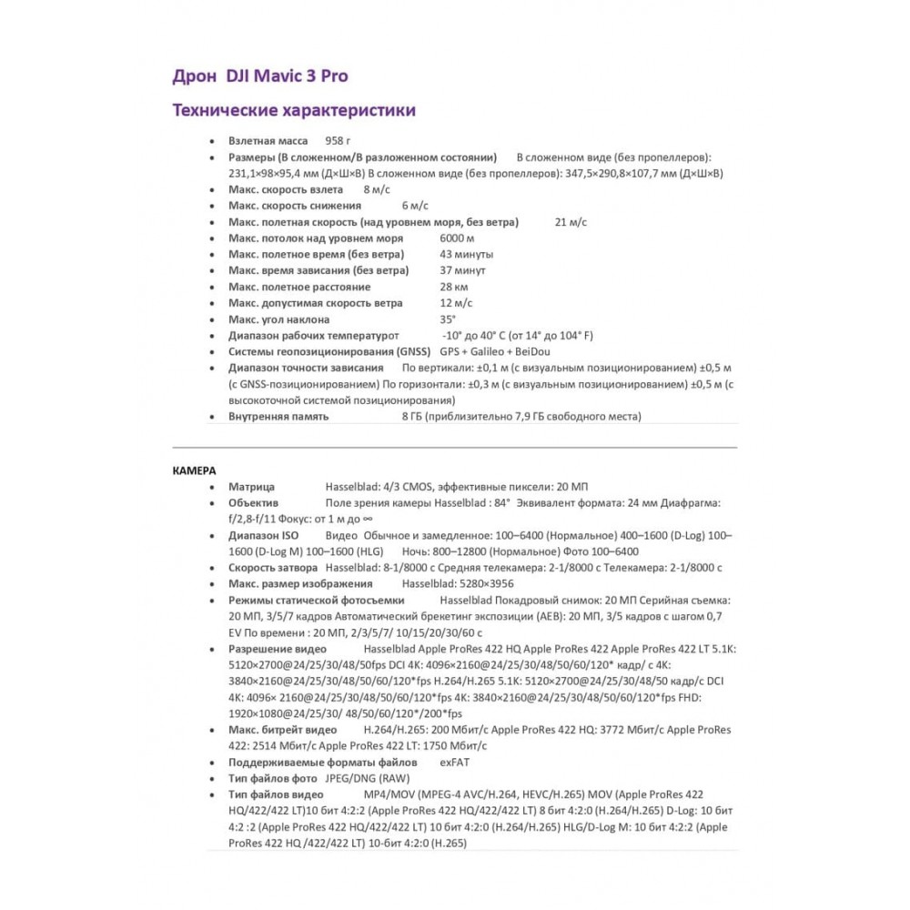- Квадрокоптер DJI Mavic 3 Pro — 1 шт.