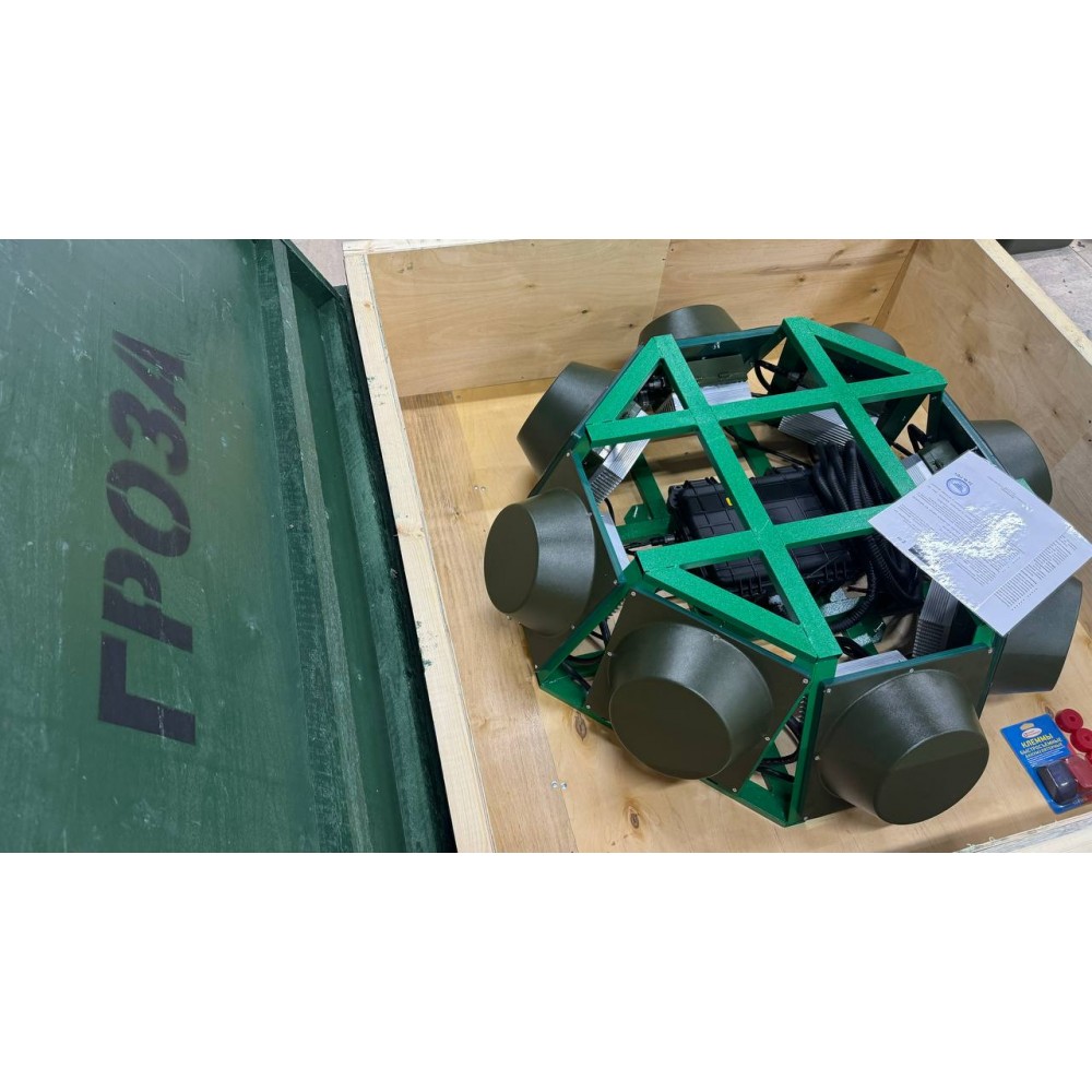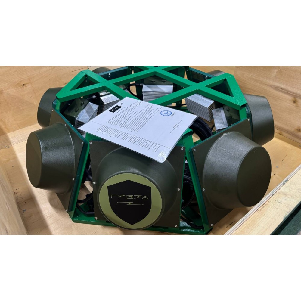 Подавитель FPV дронов «Гроза Броня 3.0» предназначен для защиты автомобилей и бронетехники от атак дронов-камикадзе. Устройство, состоящее из восьми модулей глушения и блока питания, обеспечивает радиоподавление в секторе 360 градусов.